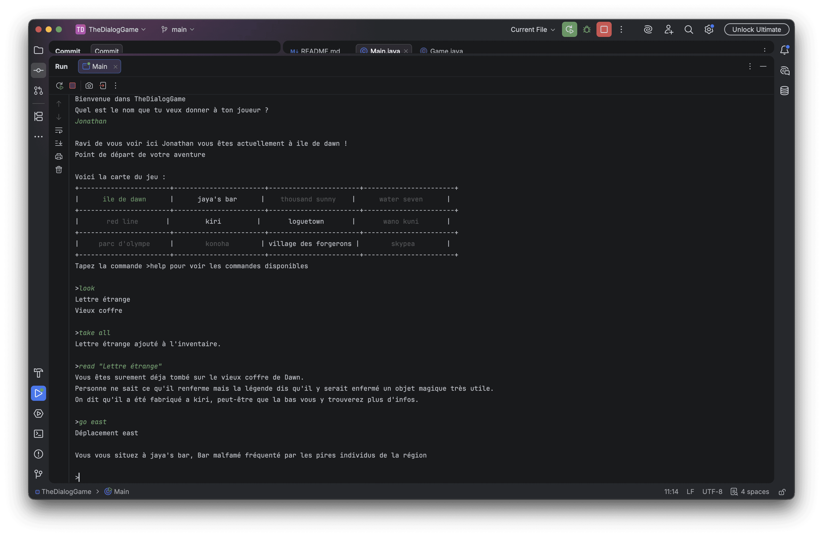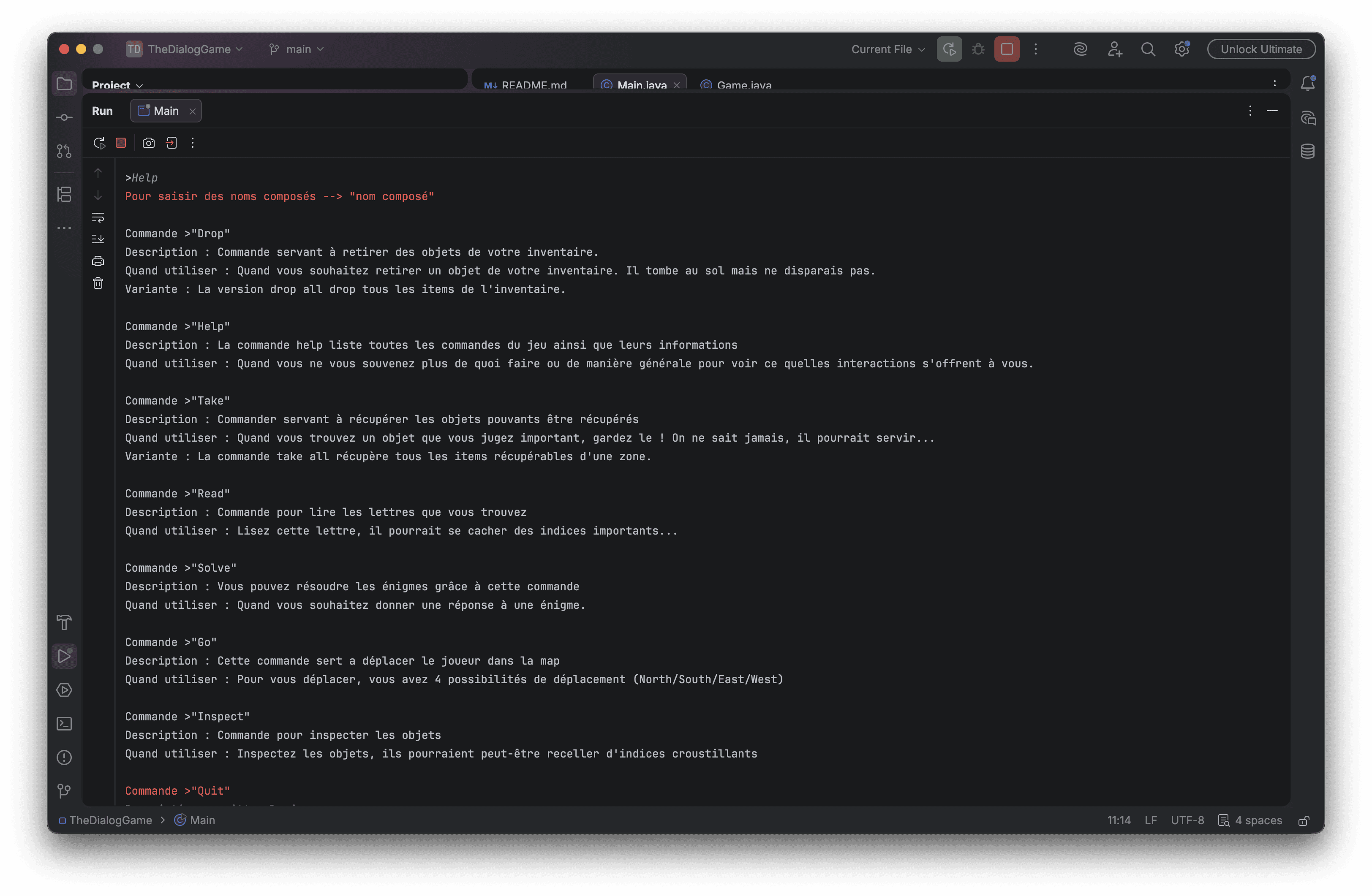 TheDialogGame est un jeu d'aventure textuel développé en Java dans le cadre d'un exercice académique de première année à la HEIG-VD. Ce qui devait être un simple TP s'est transformé en projet personnel ambitieux : ma curiosité et mon envie d'aller plus loin m'ont poussé à construire une architecture bien au-delà des exigences initiales.
